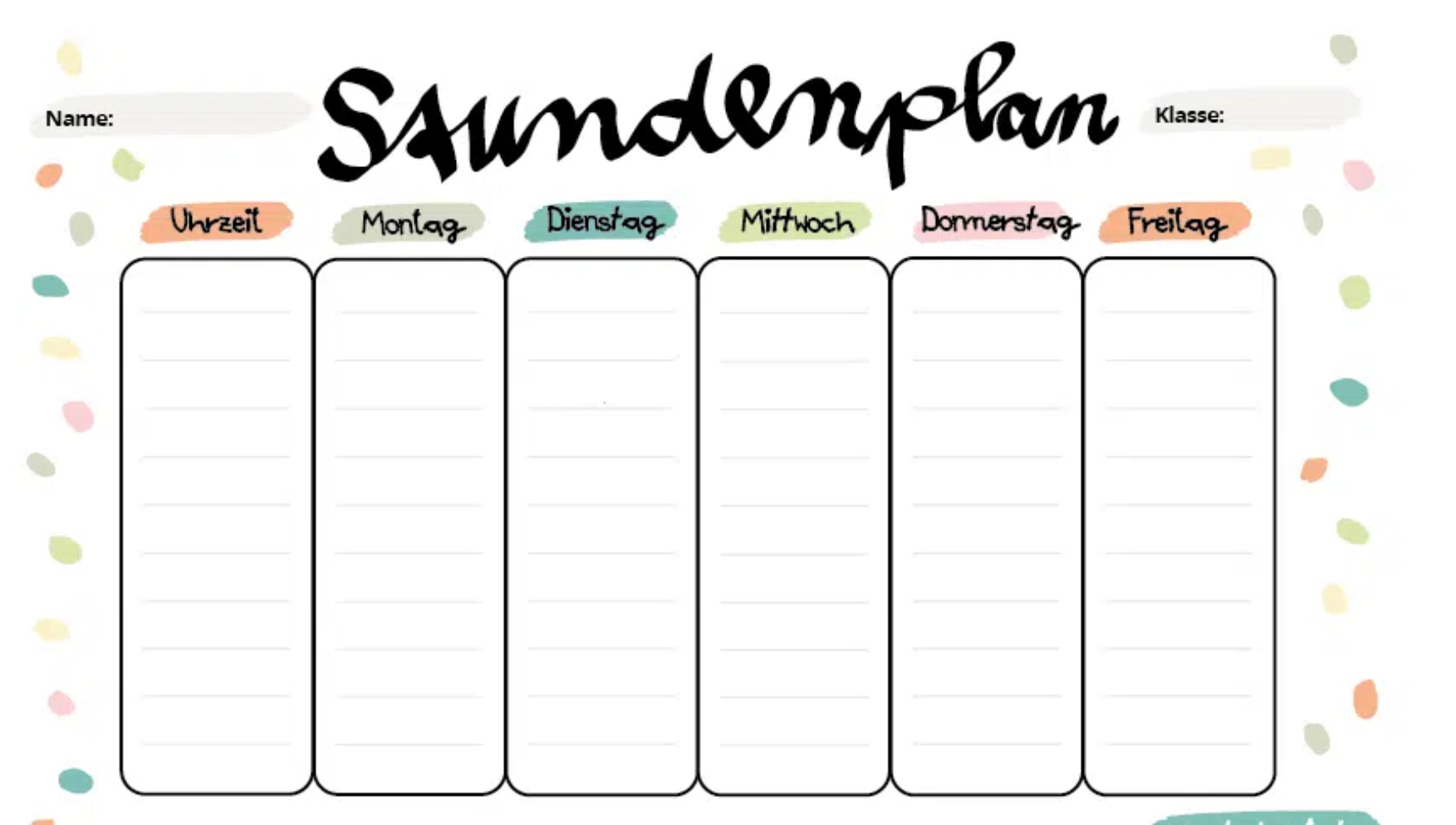 Bunte Stundenpläne Mar 7, 2022 Aquí puedes descargar e imprimir tu propio horario. Hay muchos modelos divertidos, elige el tuyo, imprímelo y rellénalo con tus horas. Hicimos una selección de páginas gratuitas. Viel Spaß!