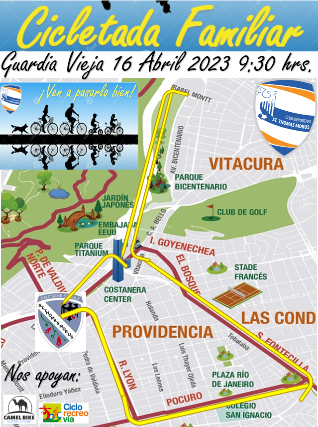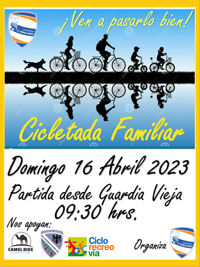Cicletada familiar Abr 5, 2023 Invitamos a toda la comunidad a sumarse a esta actividad familiar organizada por el Club Deportivo Morus. El deporte y la convivencia son parte importante en la formación integral.