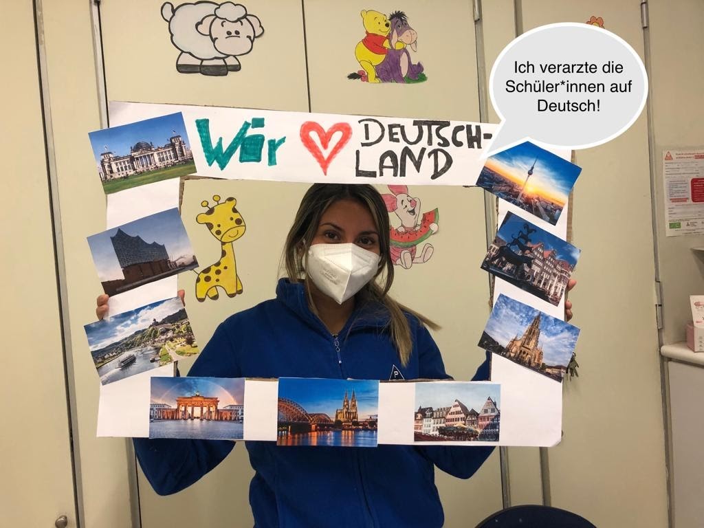 Unsere Praktikantinnen aus Deutschland, Leonie und Anna erfreuen uns mit der Version 2.0 unseres Projektes „Sag´s auf Deutsch“ bzw. jetzt „Wir Deutschland“. Unterstützt wurden sie von Tante Cyntia, Valeria Venthur und Diego Sandoval. Allen ein herzliches Dankeschön.