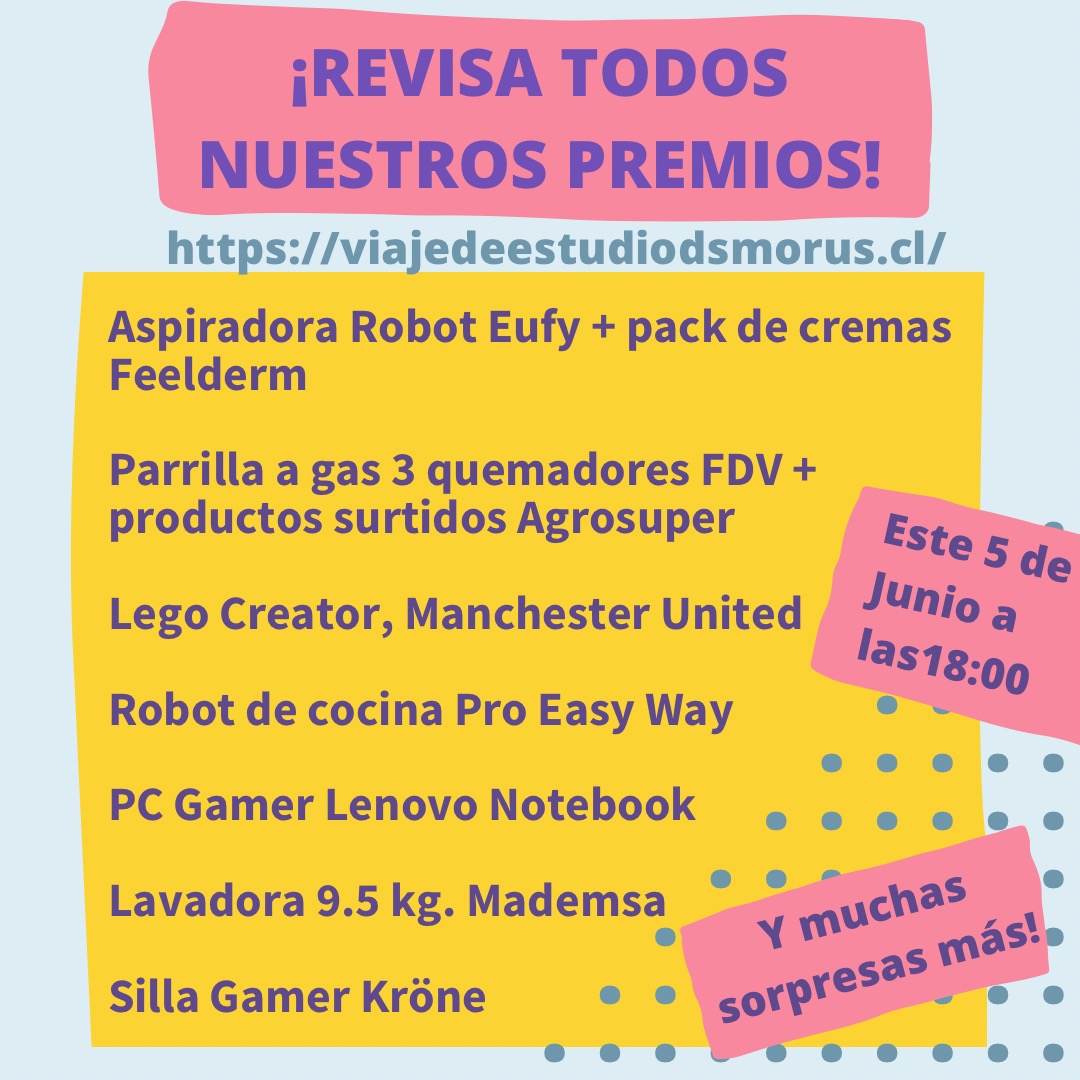 PREVENTA: https://viajedeestudiodsmorus.cl/ ¡¡¡Compra hasta el 21 de mayo a las 21 horas, y participa por 4 premios!!!!